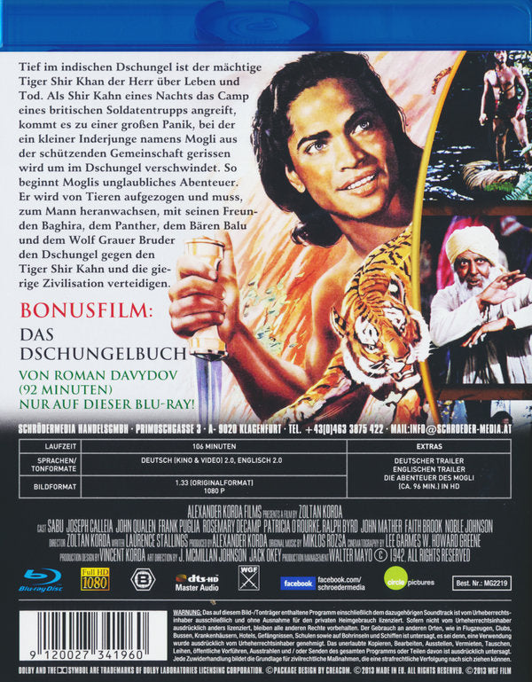 Enthält: Deutscher Trailer (ca. 2:04 Min.); Englischer Trailer (ca. 2:04 Min.); "Die Abenteuer des Mogli" (ca. 96 Min. in HD); Bonusfilm: "Das Dschungelbuch" von Roman Davydov (ca. 92 Min.);