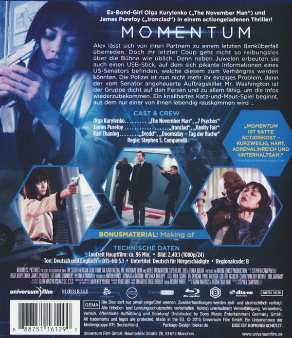 "Momentum' ist ein Kick-Ass-Actionfilm, der ein wenig an die ‚Bourne'-Filme erinnert." (skonmovies.com)