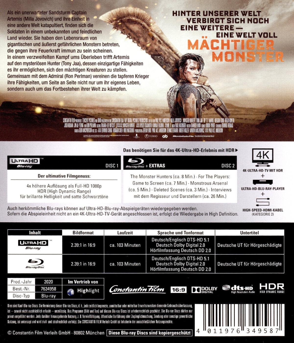 Enthält: Enthält 2 Discs: 4K Ultra HD & Blu-ray, Die Blu-ray ist in 2D und 3D abspielbar; Wendecover; The Monster Hunters; For The Players: Game to Screen; Monstrous Arsenal; Deleted Scenes; Interviews;
