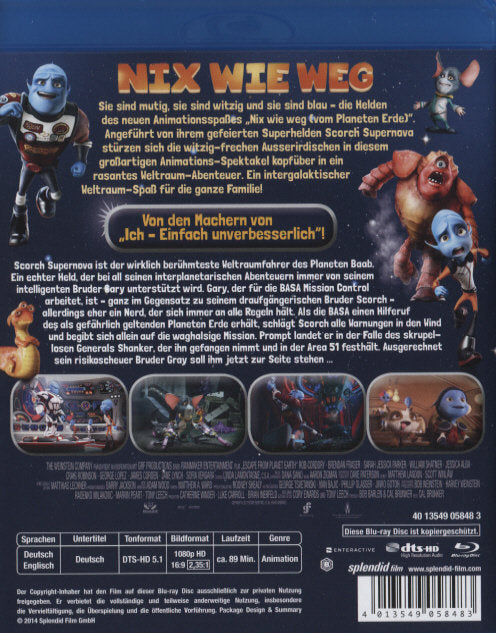 Auf dem Planeten Baab ist der Astronaut Scorch Supernova ein Nationalheld und wird von der blauen Alienbev�lkerung verehrt und bewundert. Unterst�tzt wird er bei seinen Rettungsaktionen von seinem Bruder Gary, einem Nerd, der sich an alle Regeln h�lt und f�r die Mission Control der BASA-Kontrollbasis arbeitet. Als sie einen Hilferuf des durch und durch gef�hrlichen Planeten Erde erhalten, schl�gt Scorch alle Warnungen in den Wind und begibt sich allein auf die waghalsige Mission. Prompt landet er in der Falle des skrupellosen General Shanker, der ihn gefangen nimmt und in der Area 51 festh�lt. Dummerweise kann ihm jetzt nur noch sein risikoscheuer Bruder Gary helfen...
