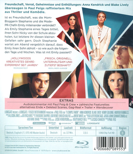 Ist es wirklich Freundschaft, was die unscheinbare und mäßig erfolgreiche Mom-Bloggerin Stephanie (Anna Kendrick) und die extravagante Mode-PR-Chefin Emily (Blake Lively) miteinander verbindet oder kommt Emily die alleinerziehende Stephanie nur gelegen, wenn sich ihr übervoller Terminkalender mal wieder überschlägt? So auch, als Emily sie eines Tages bittet, ihren Sohn Nicky von der Schule abzuholen und Stephanie ihr diesen kleinen Gefallen sehr gerne tut. Doch nicht nur an diesem Abend wartet Stephanie vergeblich darauf, dass Emily ihren Sohn abholt – Emily bleibt auch die folgenden Tage und Wochen verschwunden… Stephanie kümmert sich ab sofort gemeinsam mit Emilys Mann Sean (Henry Golding) um Nicky. Doch: Was ist mit Emily passiert? Nichts scheint so zu sein, wie es ist…