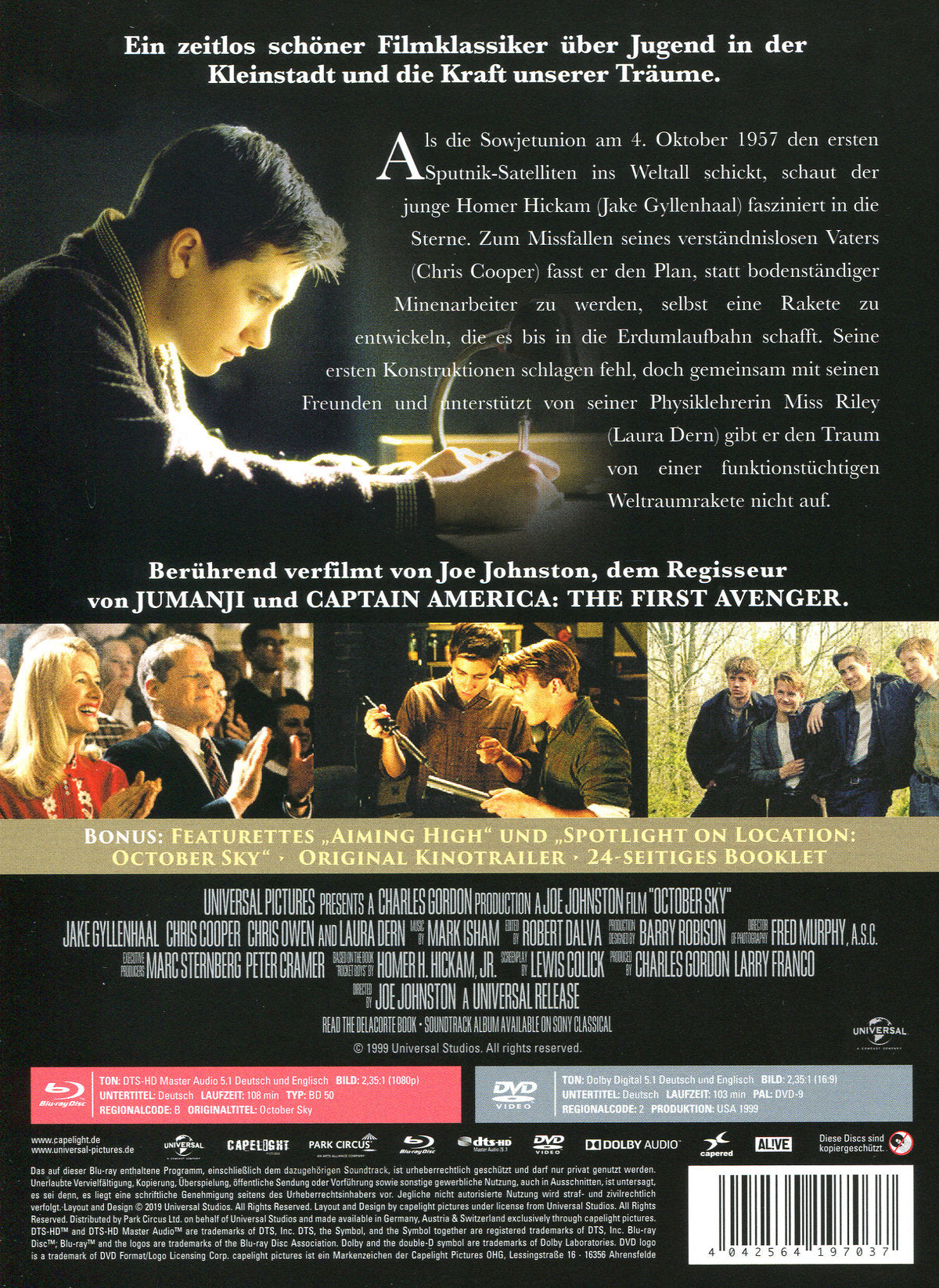 Enthält: 2-Disc Limited Collector’s Edition im Mediabook mit dem Film auf Blu-ray und DVD inkl. Bonusmaterial und 24-seitigem Booklet; Featurettes "Aiming High" und "Spotlight On Location: October Sky"; Original Kinotrailer;