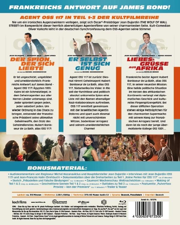 Nie um ein ironisches Augenzwinkern verlegen, zeigt sich Oscar®-Preisträger Jean Dujardin (THE WOLF OF WALL STREET) im Rampenlicht dieser herrlich aberwitzigen Agentenfilme von seiner charmantesten Seite. Kult-Comedian Oliver Kalkofe leiht in der deutschen Synchronfassung dem OSS-Agenten seine Stimme!