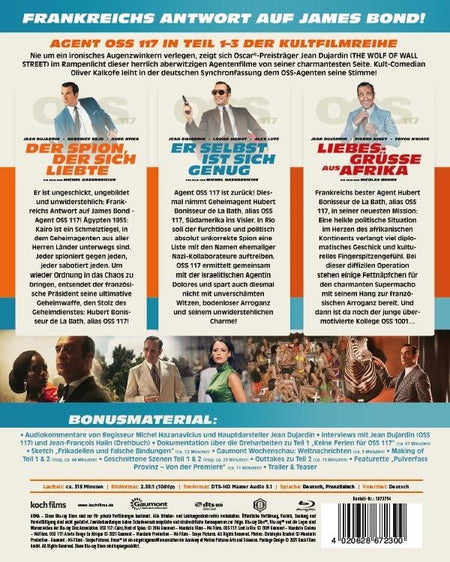 Die drei Kultkomödien um die Abenteuer des unvergleichlichen Agenten Hubert Boniseuer de La Bath alias OSS 117 – gespielt von Jean Dujardin – in einer Edition.