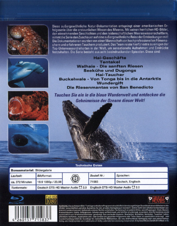 Diese außergewöhnliche Natur-Dokumentation entspringt einer amerikanischen Erfolgsserie über die erstaunlichen Wesen des Meeres. Mit den herrlichen HD-Bildern, den einnehmenden Geschichten und den leidenschaftlichen Meereswissenschaftlern nimmt die Serie den Zuschauer auf eine außergewöhnliche Reise der Entdeckungen mit. Die Dokumentationen wurden von einer Mannschaft hochprofessioneller Filmemacher und erfahrener Taucher produziert. Das Team reiste hierfür extra zu einigen der Top-Unterwasserdrehorten in der Welt, um sensationelle Aufnahmen und Eindrücke festzuhalten.