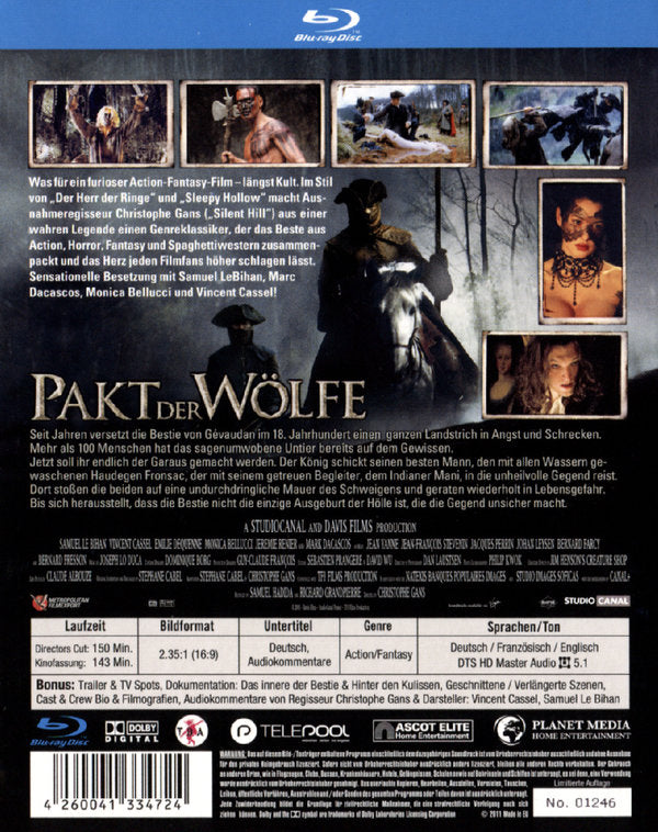Enthält: Trailer; TV Spots; Dokumentationen: Das innere der Bestie & Hinter den Kulissen; Geschnittene & Verlängerte Szenen; Cast & Crew Bio & Filmografien; Audiokommentare von Regisseur Christophe Gans, Vincent, Cassel, Samuel Le Bihan;
