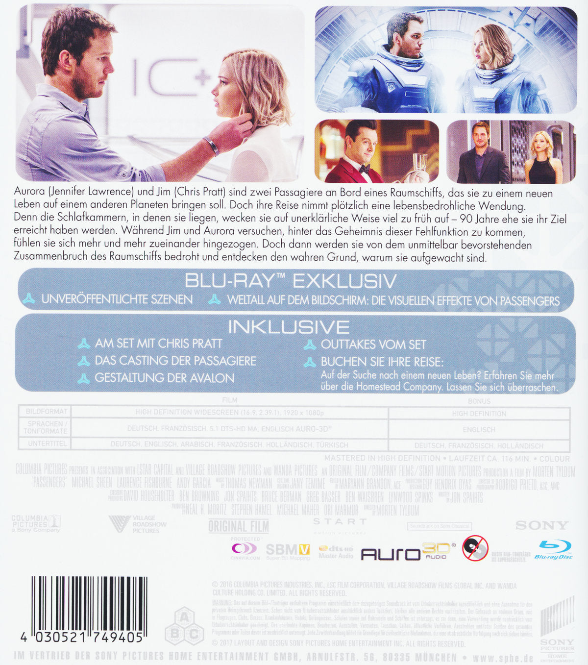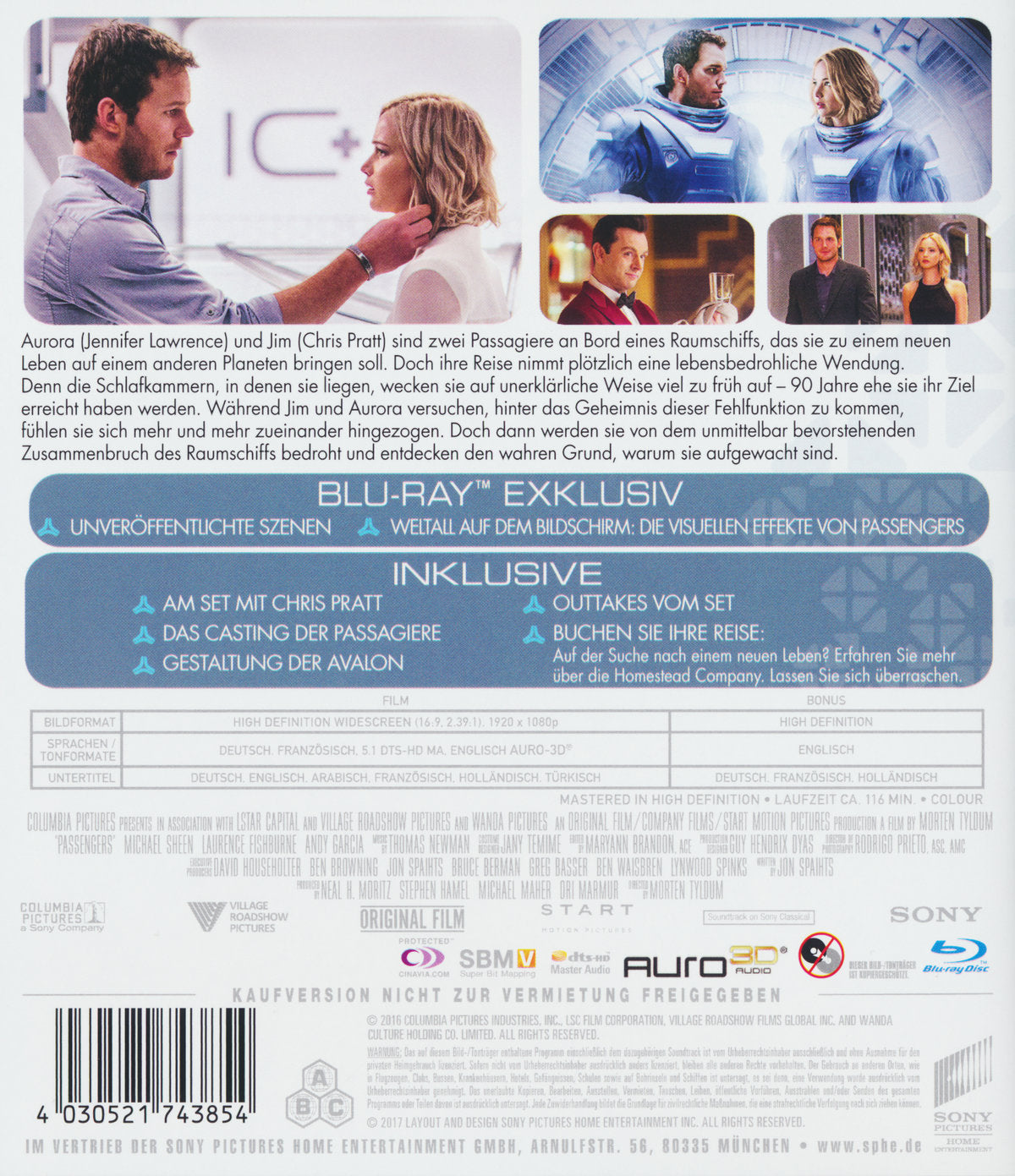 Enthält: Am Set mit Chris Pratt; Das Casting der Passagiere; Gestaltung der Avalon; Outtakes vom Set; Buchen Sie ihre Reise; Unveröffentlichte Szenen; Weltall auf dem Bildschirm: Die visuellen Effekte;
