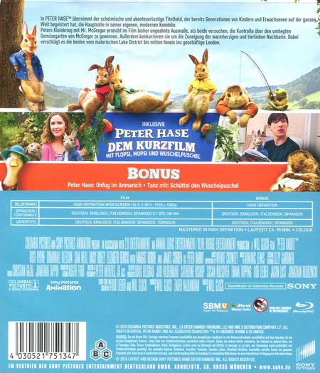 Peters Kleinkrieg mit Mr. McGregor (DOMHNALL GLEESON) erreicht im Film bisher ungeahnte Ausmaße, als beide versuchen, die Kontrolle über den umhegten Gemüsegarten von McGregor zu gewinnen. Außerdem konkurrieren sie um die Zuneigung der warmherzigen und tierlieben Nachbarin (ROSE BYRNE). Dabei verschlägt es die beiden vom malerischen Lake District bis mitten hinein ins geschäftige London.