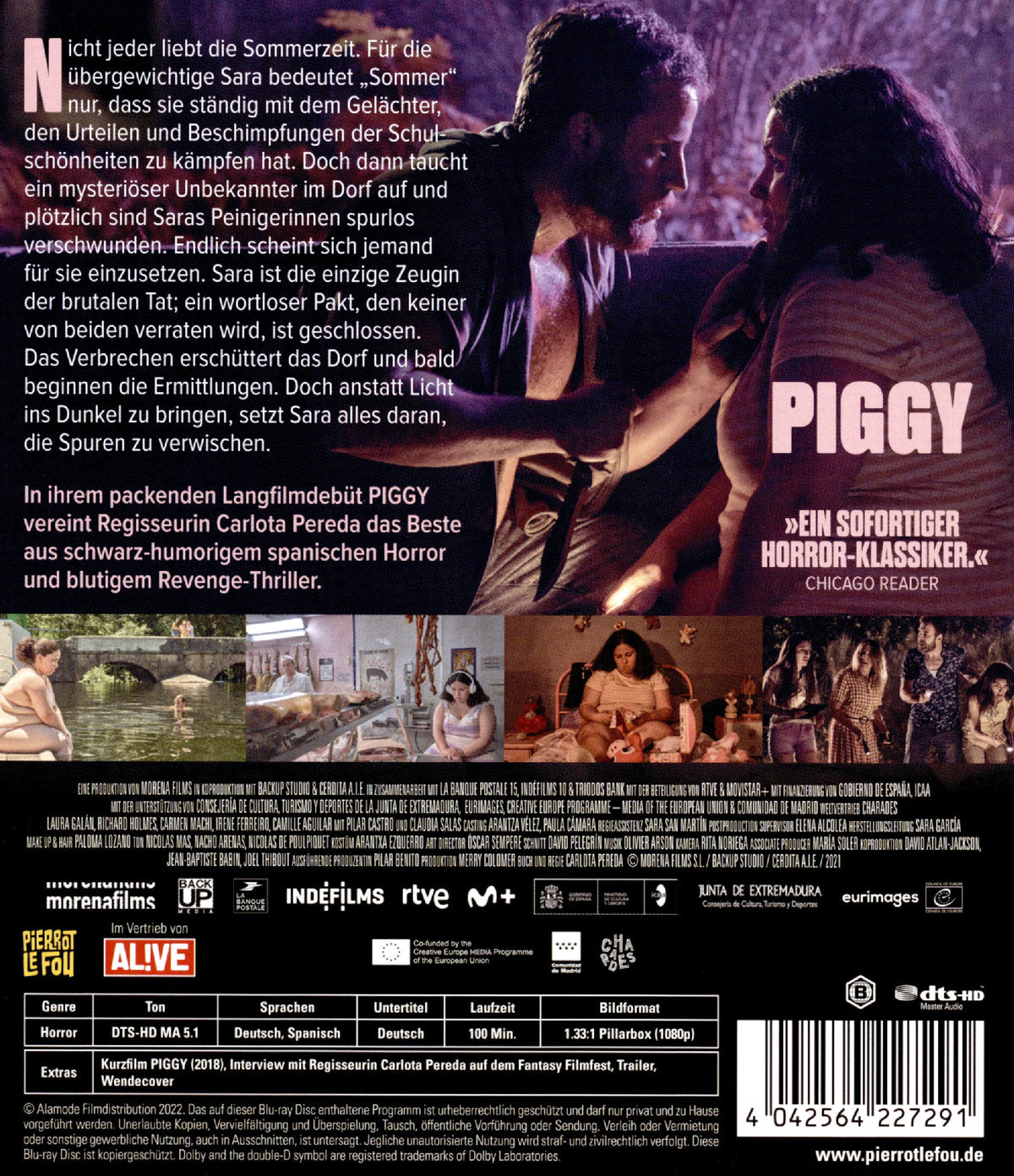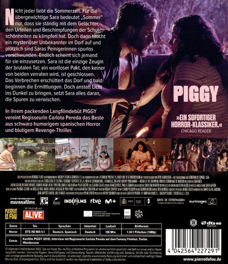 Nach ihrem überaus erfolgreichen Kurzfilm mit demselben Titel erzählt Regisseurin Carlota Pereda die Geschichte in ihrem blutigen Langfilmdebüt fort und schreckt dabei auch nicht vor drastischen Gewaltszenen zurück. In PIGGY vereint sie das Beste aus schwarz-humorigem spanischen Horror, Revenge-Thriller und authentischem Coming-of-Age.