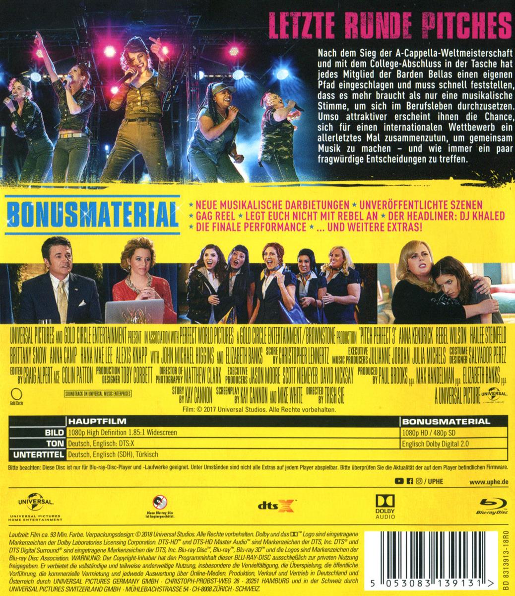 Gerade erst vom College, m�ssen die Bellas schon feststellen, dass es schwieriger ist, in der erbarmungslosen Arbeitswelt den richtigen und passenden Ton zu treffen als auf einer A-cappella-B�hne. Die Euphorie nach dem Sieg bei der Weltmeisterschaft ist schnell verpufft, als jede von ihnen bei der Suche nach einem richtigen Job auf sich allein gestellt ist. Umso erfolgsversprechender scheint ihnen die M�glichkeit, sich f�r einen internationalen Wettbewerb ein letztes Mal zusammen zu tun.