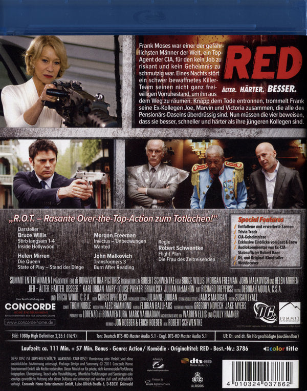 Schauspieler: Bruce Willis, Helen Mirren, James Remar, John Malkovich, Karl Urban, Mary-Louise Parker, Morgan Freeman und Richard Dreyfuss
