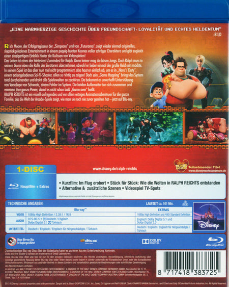 Nach 30 Jahren hat Kraftprotz Ralph genug von der Zerstörerrolle, die er in einem altmodischen 8-Bit-Game ausführen muss. So verlässt er dieses und tritt ein in die modernere Spielewelten, um endlich selbst als Held gefeiert zu werden. Unbeabsichtigt löst er damit im Action-Game "Heros Duty" Chaos aus, entdeckt aber im kindlichen Racing-Game "Sugar Rush" eine verwandte Seele. Denn Power-Göre Vanellope reicht es, als Programmierungsstörung ausgegrenzt zu werden. Sie will mit Ralphs Unterstützung Rennchampion und endlich akzeptiert werden.