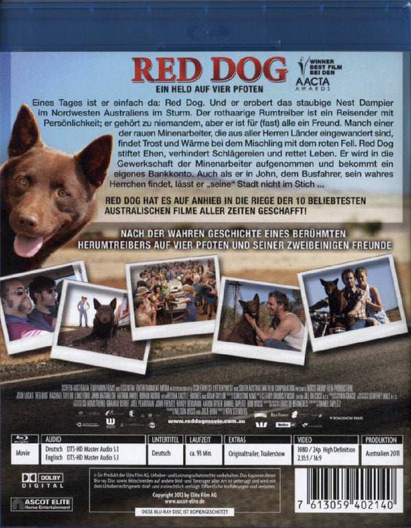Der rothaarige Rumtreiber ist ein Reisender mit Persönlichkeit; er gehört zu niemandem, aber er ist für alle ein Freund. Manch einer der rauen Minenarbeiter, die aus aller Herren Länder eingewandert sind, findet Trost und Wärme bei dem Hütehund-Mischling. Red Dog stiftet Ehen, verhindert Schlägereien und rettet Leben. Er wird in die Gewerkschaft der Minenarbeiter aufgenommen und bekommt ein eigenes Bankkonto. Auch als er in John, dem Busfahrer, sein wahres Herrchen findet, lässt er "seine" Stadt nicht im Stich.