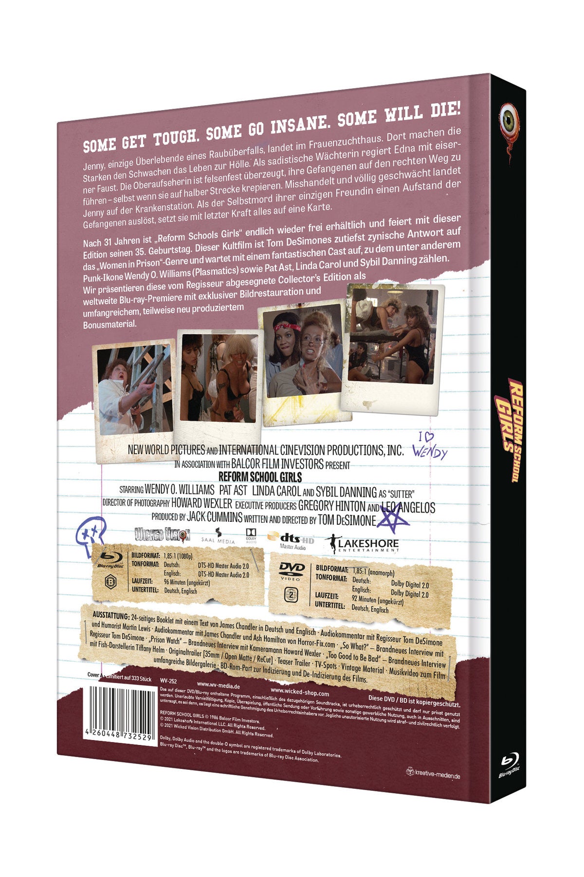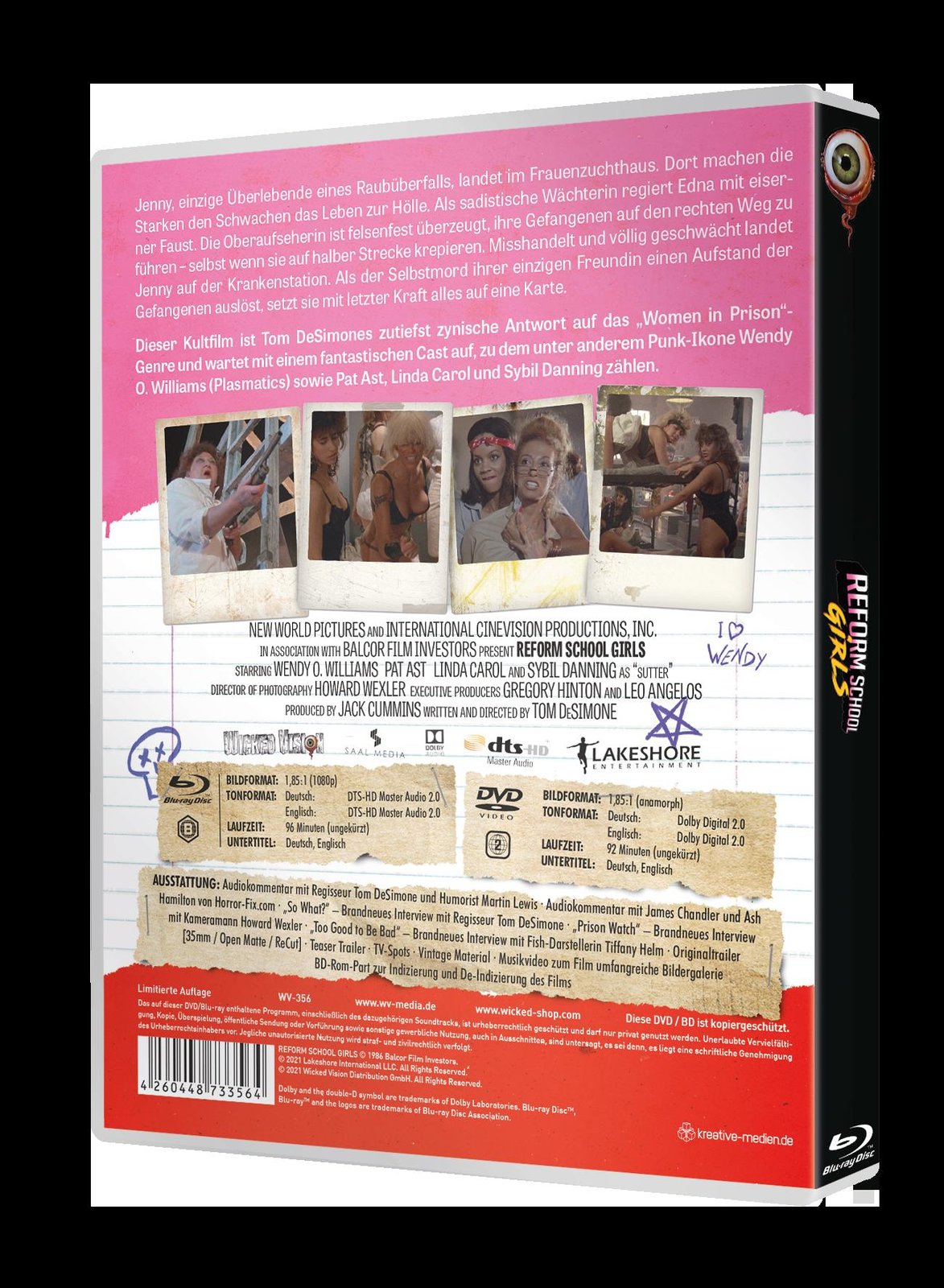 Nach 31 Jahren ist „Reform Schools Girls“ endlich wieder frei erhältlich und feiert mit dieser Edition seinen 35. Geburtstag. Dieser Kultfilm ist Tom DeSimones zutiefst zynische Antwort auf das „Women in Prison“-Genre und wartet mit einem fantastischen Cast auf, zu dem unter anderem Punk-Ikone Wendy O. Williams (Plasmatics) sowie Pat Ast, Linda Carol und Sybil Danning zählen. Wir präsentieren diese vom Regisseur abgesegnete Collector’s Edition als weltweite Blu-ray-Premiere mit exklusiver Bildrestauration und umfangreichem, teilweise neu produziertem Bonusmaterial.