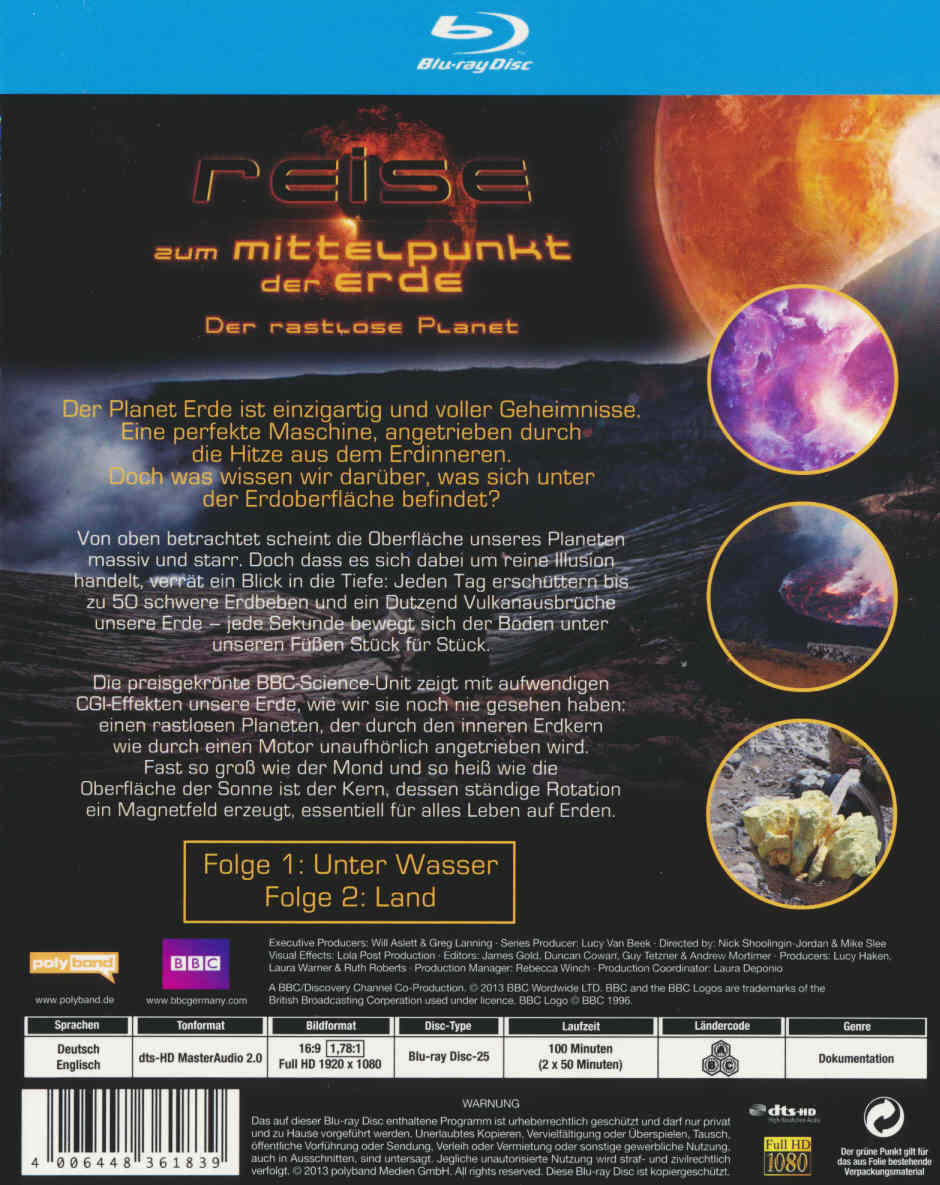 Der Planet Erde ist einzigartig und voller Geheimnisse. Eine perfekte Maschine, angetrieben durch die Hitze aus dem Erdinneren. Doch wie viel wissen wir davon, was sich wirklich unter der Erdoberfläche befindet? Die preisgekrönte BBC-Science Unit zeigt mit aufwendigen CGI-Effekten unsere Erde, wie wir sie noch nie gesehen haben: einen rastlosen Planeten, der durch den inneren Erdkern wie durch einen Motor unaufhörlich angetrieben wird. Fast so groß wie der Mond und so heiß wie die Oberfläche der Sonne ist der Kern, dessen ständige Rotation ein Magnetfeld erzeugt, essentiell für alles Leben auf Erden.