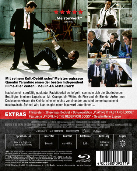 Enthält: Geschnittene Szenen; Doku: „Playing It Fast and Loose“; Featurette: „Profiling the Reservoir Dogs“; Poster; 24-seitiges Booklet; Wendecover;