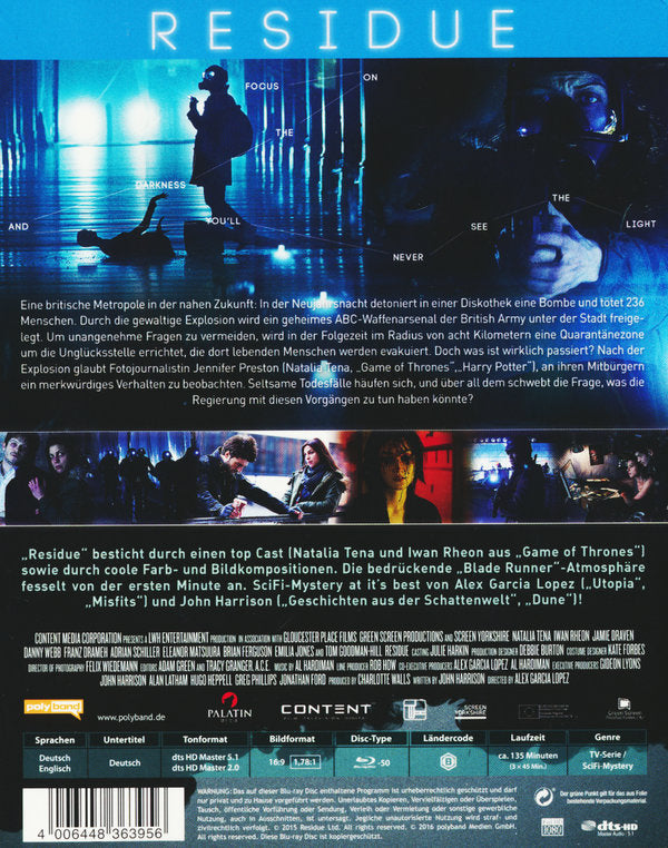 "Residue" besticht durch einen 1A-Cast (Natalia Tena und Iwan Rheon aus "Game of Thrones"), sowie durch coole Farb- und Bildkompositionen, wie sie selbst Regie-Gigant Ridley Scott nicht besser hinbekommen hätte. Die bedrückende "Blade Runner"-Atmosphäre fesselt von der ersten Minute an und verneigt sich mit popkulturellen Verweisen. SciFi-Mystery at it's best von Alex Garcia Lopez ("Utopia", "Misfits")!