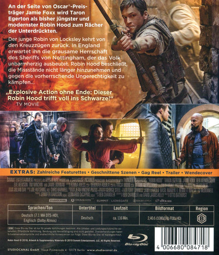 Der junge Robin von Locksley (Taron Egerton) kehrt vom Schlachtfeld der Kreuzzüge zurück. In England erwarten ihn Korruption, Intrigen und die grausame Herrschaft des Sheriffs von Nottingham (Ben Mendelsohn), der das Volk bis zur bitteren Armut ausbeutet. Robin Hood beschließt gemeinsam mit seinem Verbündeten Little John (Jamie Foxx), die Missstände nicht länger hinzunehmen und gegen die vorherrschende Ungerechtigkeit zu kämpfen. Sie legen sich mit den höchsten Instanzen an und haben schon bald den skrupellosen Sheriff von Nottingham zum Feind.