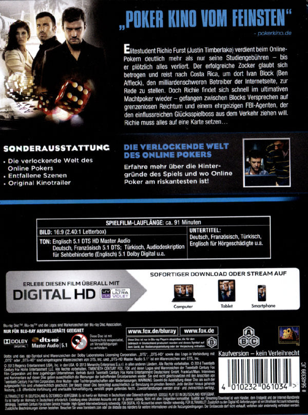 Elitestudent Richie Furst verdient beim Online-Pokern deutlich mehr als nur seine Studiengebühren - bis er plötzlich alles verliert. Der erfolgreiche Zocker glaubt sich betrogen und reist nach Costa Rica, um dort Ivan Block, den milliardenschweren Betreiber der Internetseite, zur Rede zu stellen. Doch Richie findet sich schnell im ultimativen Machtpoker wieder - gefangen zwischen Blocks, Versprechen auf grenzenlosen Reichtum und einem ehrgeizigen FBI-Agenten, der den einflussreichen Glücksspielboss aus dem Verkehr ziehen will. Richie muss alles auf eine Karte setzen...