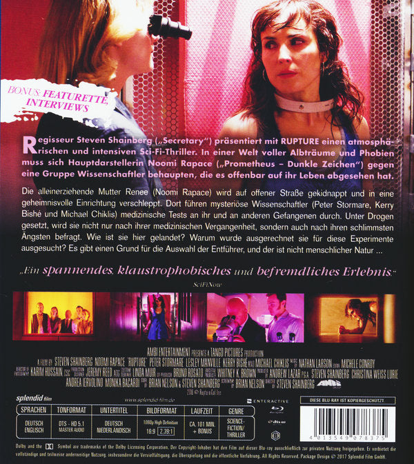 Die alleinerziehende Mutter Renee (Noomi Rapace) wird auf offener Straße gekidnappt und in eine geheimnisvolle Einrichtung verschleppt. Dort führen mysteriöse Wissenschaftler (Peter Stormare, Kerry Bishé und Michael Chiklis) medizinische Tests an ihr und an anderen Gefangenen durch. Unter Drogen gesetzt, wird sie nicht nur nach ihrer medizinischen Vergangenheit, sondern auch nach ihren schlimmsten Ängsten befragt. Wie ist sie hier gelandet? Warum wurde ausgerechnet sie für diese Experimente ausgesucht? Es gibt einen Grund für die Auswahl der Entführer, und der ist nicht menschlicher Natur...
