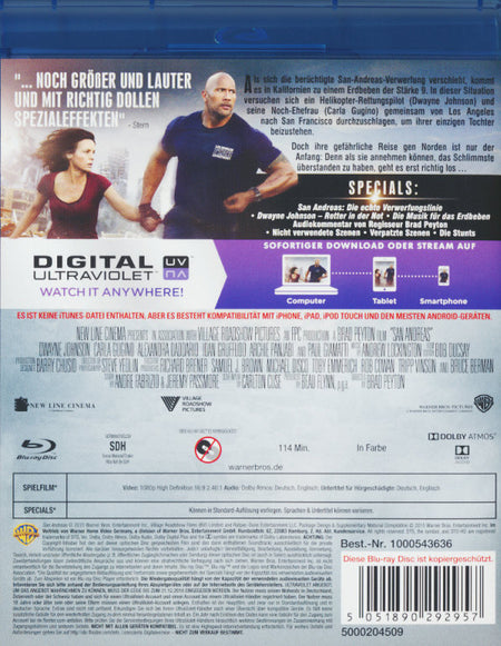 Enthält: San Andreas: Die echte Verwerfungslinie; Dwayne Johnson - Retter in der Not; Die Musik für das Erdbeben; Audiokommentar; Nicht verwendete Szenen; Verpatzte Szenen; Die Stunts;