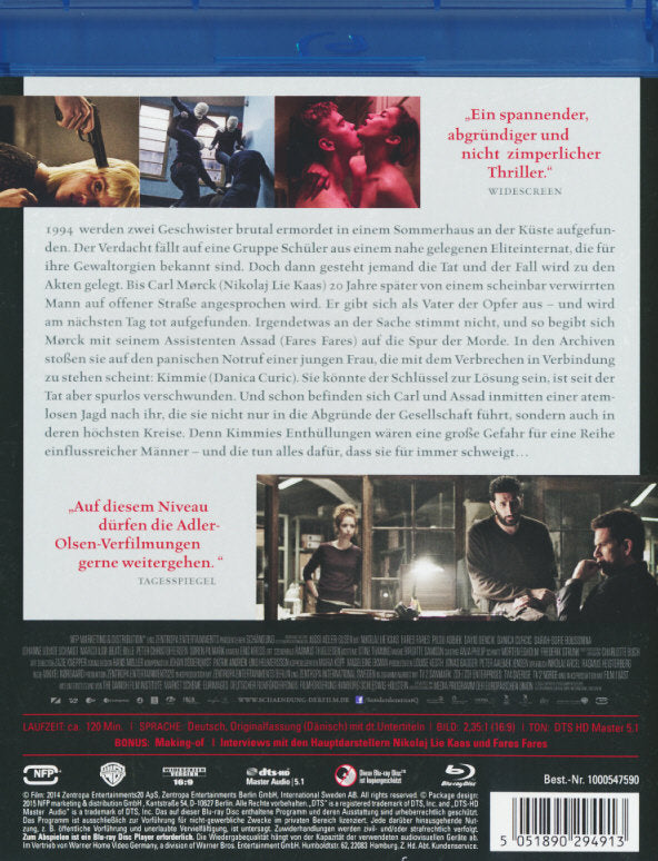 1994 werden zwei Geschwister brutal ermordet in einem Sommerhaus an der Küste aufgefunden. Der Verdacht fällt auf eine Gruppe Schüler aus einem nahe gelegenen Eliteinternat, die für ihre Gewaltorgien bekannt sind. Doch dann gesteht ein anderer die Tat und der Fall wird zu den Akten gelegt. Bis Carl Mørck 20 Jahre später von einem scheinbar verwirrten Mann auf offener Straße angesprochen wird. Er gibt sich als Vater der Opfer aus – und wird am nächsten Tag tot aufgefunden.