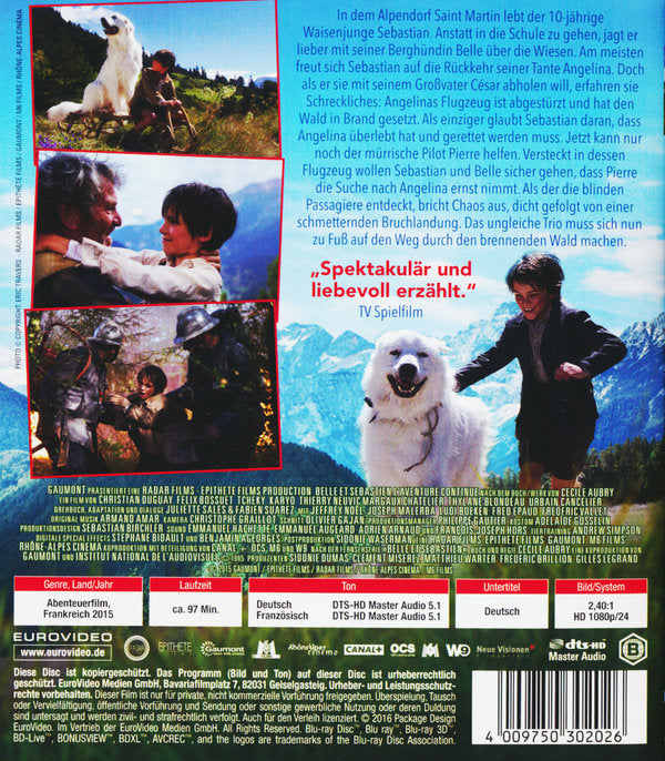 In dem Alpendorf Saint Martin lebt der 10-jährige Waisenjunge Sebastian. Anstatt in die Schule zu gehen, jagt er lieber mit seiner Berghündin Belle über die Wiesen. Am meisten freut sich Sebastian auf die Rückkehr seiner Tante Angelina. Doch als er sie mit seinem Großvater César abholen will, erfahren sie Schreckliches: Angelinas Flugzeug ist abgestürzt und hat den Wald in Brand gesetzt. Als einziger glaubt Sebastian daran, dass Angelina überlebt hat und gerettet werden muss. Jetzt kann nur noch der mürrische Pilot Pierre helfen. Versteckt in dessen Flugzeug wollen Sebastian und Belle sicher gehen, dass Pierre die Suche nach Angelina ernst nimmt. Als der die blinden Passagiere entdeckt, bricht Chaos aus, dicht gefolgt von einer schmetternden Bruchlandung. Das ungleiche Trio macht sich nun zu Fuß auf den Weg durch den brennenden Wald. Ihnen stehen nicht nur neue Freundschaften und aufregende Abenteuer bevor, sondern große Gefahren und ein noch größeres Geheimnis.