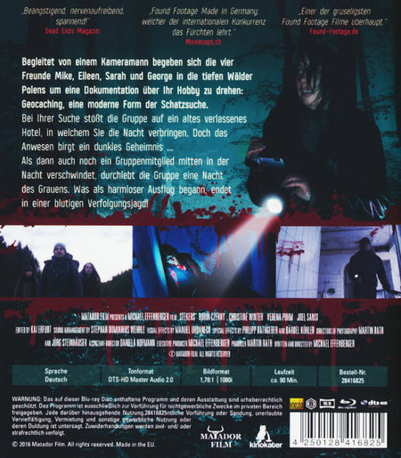 Begleitet von einem Kameramann begeben sich die vier Freunde Mike, Eileen, Sarah und George in die tiefen Wälder Polens um eine Dokumentation über Ihr Hobby zu drehen: Geocaching, eine moderne Form der Schatzsuche. Bei Ihrer Suche stößt die Gruppe auf ein altes verlassenes Hotel, in welchem Sie die Nacht verbringen. Doch das Anwesen birgt ein dunkles Geheimnis... Als dann auch noch ein Gruppenmitglied mitten in der Nacht verschwindet, durchlebt die Gruppe eine Nacht des Grauens. Was als harmloser Ausflug begann, endet in einer blutigen Verfolgungsjagd!