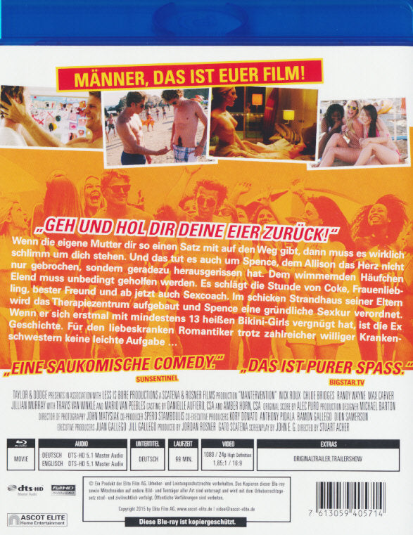 �Geh und hol dir deine Eier zur�ck!� Wenn die eigene Mutter dir so einen Satz mit auf den Weg gibt, dann muss es wirklich schlimm um dich stehen. Und das tut es auch um Spence, dem Allison das Herz nicht nur gebrochen, sondern geradezu herausgerissen hat. Dem wimmernden H�ufchen Elend muss unbedingt geholfen werden. Es schl�gt die Stunde von Coke, Frauenliebling, bester Freund und ab jetzt auch Sexcoach. Im schicken Strandhaus seiner Eltern wird das Therapiezentrum aufgebaut und Spence eine gr�ndliche Sexkur verordnet. Wenn er sich erstmal mit mindestens 13 hei�en Bikini-Girls vergn�gt hat, ist die Ex Geschichte. F�r den liebeskranken Romantiker trotz zahlreicher williger Krankenschwestern keine leichte Aufgabe �