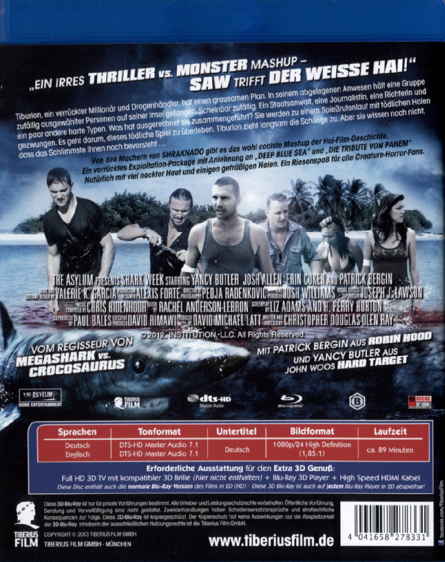 Tiburion, ein verrückter Millionär und Drogenhändler hat einen grausamen Plan. In seinem abgelegenen Anwesen hält eine Gruppe zufällig ausgewählter Personen auf seiner Insel gefangen. Scheinbar zufällig. Ein Staatsanwalt, eine Journalistin, eine Richterin und ein paar andere harte Typen. Was hat ausgerechnet sie zusammengeführt? Sie werden zu einem Spießrutenlauf mit tödlichen Haien gezwungen. Es geht darum, dieses tödliche Spiel zu überleben. Aber Tiburion zieht langsam die Schlinge zu. Aber sie wissen noch nicht, dass das schlimmste ihnen noch bevorsteht...