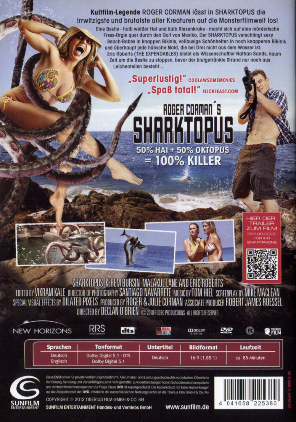 Kultfilm-Legende Roger Corman lässt in SHARKTOPUS die irrwitzigste und brutalste aller Kreaturen auf die Monsterfilmwelt los! Eine Bestie halb weisser Hai und halb Riesenkrake macht sich auf eine mörderische Fress- Orgie quer durch den Golf von Mexiko. Der SHARKTOPUS verschlingt sexy Beach-Babes in knappen Bikinis, vollbusige Schönheiten in noch knapperen Bikinis und überhaupt jede hübsche Maid, die nicht bei Drei nicht aus dem Wasser ist. Eric Roberts (THE EXPENDABLES) bleibt als Wissenschaftler Nathan Sands nur noch wenig Zeit um die Bestie zu stoppen, bevor der blutgetränkte Strand nur noch aus Leichenteilen besteht...