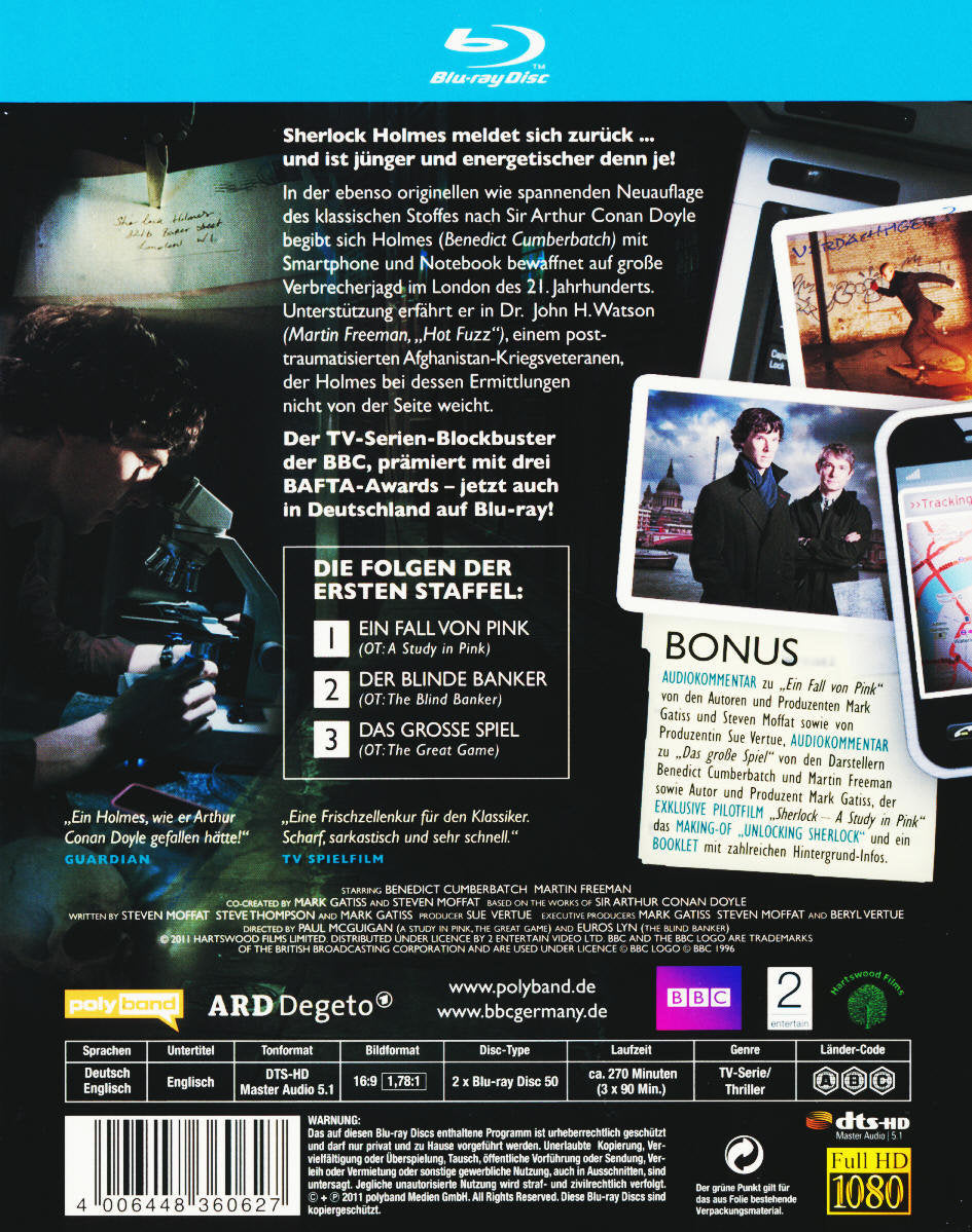 Sherlock Holmes meldet sich zurück und ist jünger und energetischer denn je! In der ebenso originellen wie spannenden Neuauflage des klassischen Stoffes nach Sir Arthur Conan Doyle, begibt sich Holmes mit Smartphone und Notebook bewaffnet auf große Verbrecherjagd im London des 21. Jahrhunderts. Unterstützung erfährt er in Dr. John H. Watson, einen posttraumatisierten Kriegsveteranen, der Holmes bei dessen Ermittlungen nicht von der Seite weicht.