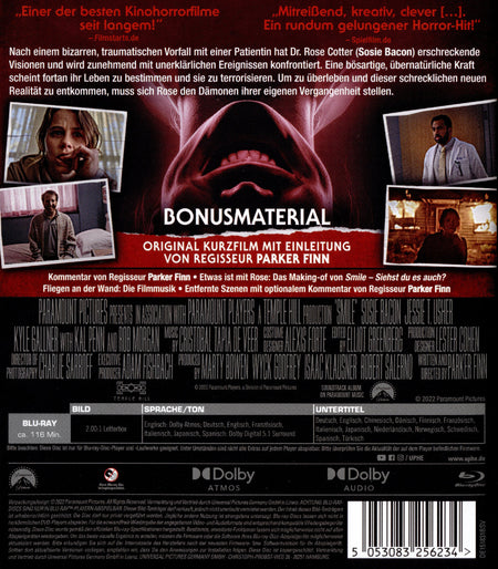 Enthält: Kommentar von Regisseur Parker Finn, Das Making of von "Smile - Siehst du es auch?", Filmmusik, Entfernte Szenen mit optionalem Kommentar von Regisseur Parker Finn: Panikattacke,und mehr