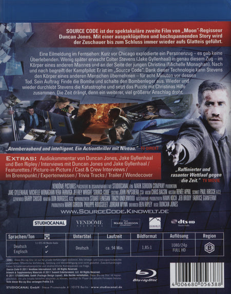 Eben war US-Soldat Colter Stevens noch im Kriegseinsatz, plötzlich findet er sich in einem Zug nach Chicago wieder - an der Seite einer jungen Frau, die ihn kennt, er sie aber nicht. Kurz darauf explodiert der Zug, und eine Stimme instruiert Stevens, dass er wieder zurück muss. Dank einer revolutionären Technologie kann er im Körper eines Passagiers die letzten acht Minuten vor der Explosion wiederholt miterleben, damit den Bomber ermitteln und dessen nächsten Terroranschlag noch am selben Tag verhindern.