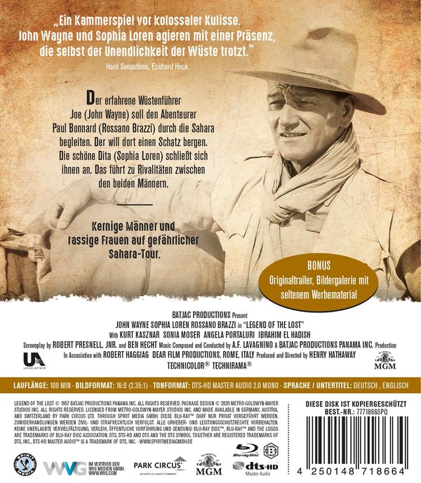=11.0ptDer Archäologe Paul Bonnard (Rossano Brazzi) hat von seinem mittlerweile verschollenen Vater von einer versunkenen Stadt in der Sahara erfahren. Dort soll ein geheimnisvoller Schatz existieren. Paul beschließt, sich auf die Suche danach zu machen. In Timbuktu sucht er sich einen wüstentauglichen Führer. In dem verwegenen Abenteurer Joe Januar (John Wayne) glaubt er den richtigen Mann gefunden zu haben. Kurz vor der Reise stößt noch die ehemalige Straßendirne Dita (Sophia Loren) zu ihnen. Sie will Joes Frau werden. Schon bald werden die beiden Männer Rivalen um die Liebe der schönen Dita. Aber um in der Wüste zu überleben, müssen die drei zusammenhalten. Doch als sie nach vielen Strapazen tatsächlich die Stadt und den Schatz finden, dreht Paul durch. Denn dort liegen auch die Skelette seines Vaters und dessen Führer, die sich offensichtlich gegenseitig umbrachten.