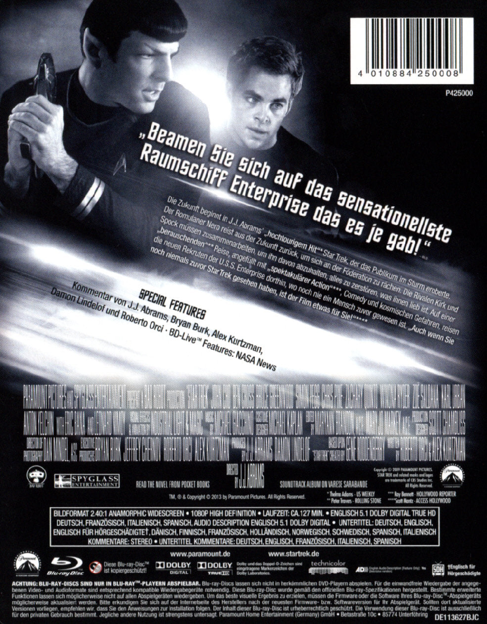 Der dreiste James Kirk und der ebenso junge Halbvulkanier Spock sind unter den Mitgliedern einer Sternenflotten-Besatzung auf dem Jungfernflug des fortgeschrittensten Raumschiffs, das je gebaut wurde: Der U.S.S. Enterprise. Auf ihrer unglaublichen Reise durch die Galaxie treffen sie den feindseligen Nero, dessen finsterer Plan die ganze Menschheit bedroht.