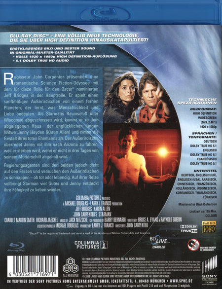 Seit 1977 schwebt die Raumkapsel "Voyager 2 " durchs Weltall. Ihre Mission: Lebewesen auf anderen Planeten von der Existenz der Erde zu berichten und sie zu uns einzuladen. Jetzt ist der erste Gast da: Starman - der liebenswerteste Außerirdische seit Galaxis-Gnom E.T.