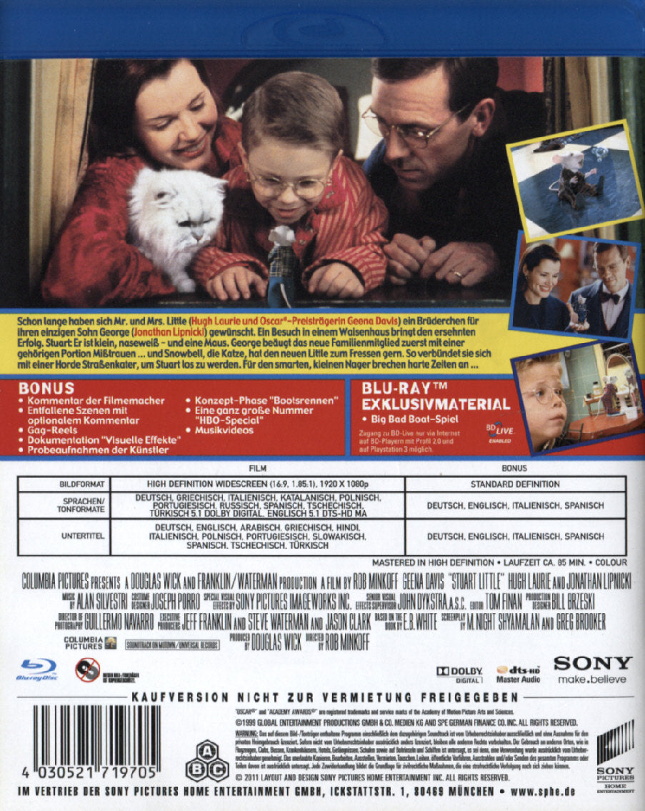 Schon lange haben sich Mr. und Mrs. Little ein Brüderchen für ihren einzigen Sohn George gewünscht. Ein Besuch in einem Waisenhaus bringt den ersehnten Erfolg. Stuart: Er ist klein, naseweiß - und eine Maus. George beäugt das neue Familienmitglied zuerst mit einer gehörigen Portion Mißtrauen ... und Snowbell, die Katze, hat den neuen Little zum Fressen gern. So verbündet sie sich mit einer Horde Straßenkater, um Stuart los zu werden. Für den smarten, kleinen Nager brechen harte Zeiten an ...