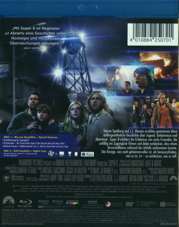 Enthält: Entschlüsselung des Zugunglücks; 8 Featurettes - Der Traum hinter Super 8, Der Besucher lebt und vieles mehr! Entfallene Szenen; Audiokommentar von J.J Abrams, Bryan Burk und Larry Fang;;