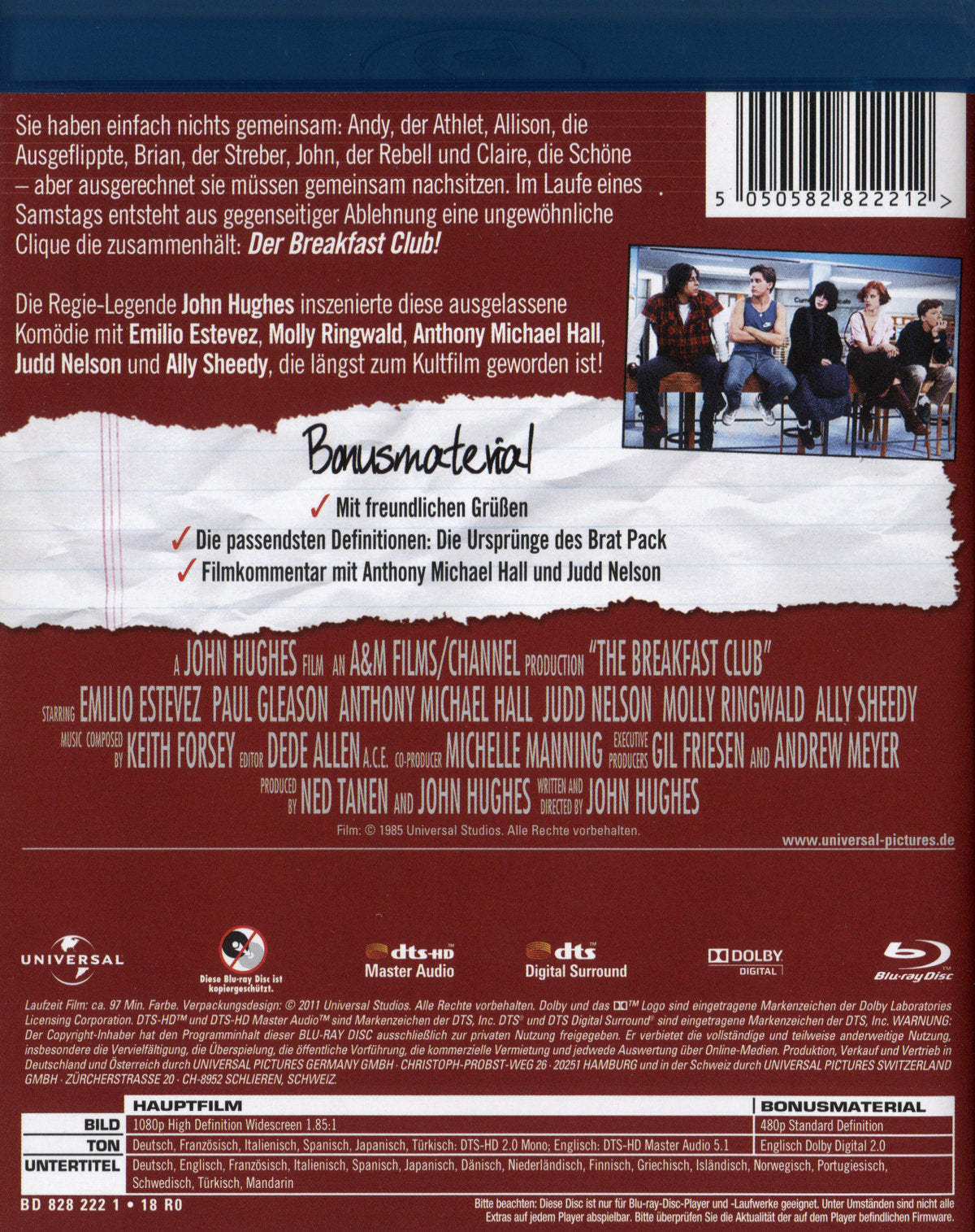 Schauspieler: Ally Sheedy, Molly Ringwald, Paul Gleason, Judd Nelson, Emilio Estevez und Anthony Michael Hall