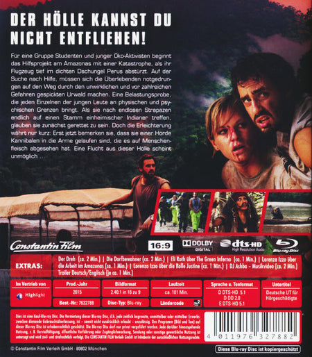 Enthält: Der Dreh; Die Dorfbewohner; Eli Roth über The Green Inferno; Lorenza Izzo über die Arbeit im Amazonas; Lorenza Izzo über die Rolle Justine; DJ Ashba - Musikvideo; Trailer Deutsch/Englisch;