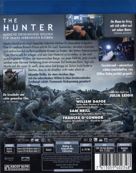 Martin David ist ein hoch bezahlter Industrie-Söldner für besondere Aufgaben. Eine skrupellose Biotech-Firma schickt ihn nach Tasmanien, um eine mystische und wahrscheinlich äußerst profitable Kreatur zu finden: den letzten Tasmanischen Tiger. Martin soll ihn erlegen und sein Gen-Material sicherstellen. In der undurchdringlichen Wildnis der tasmanischen Berge, wo jeder Fehltritt, jede Unachtsamkeit oder kleinere Verletzung einen einsamen Tod bedeuten kann, legt sich Martin auf die Lauer. Er weiß, dass seine Zeit knapp ist. Schon bald findet er Zeichen, dass er da draußen nicht mehr allein ist ...
