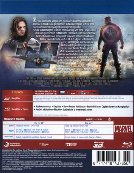 Enthält: Audiokommentar; Gag Reel; Steve Rogers Notizbuch; Insiderblick auf Captain Americas Kampfplätze; Am Set mit Anthony Mackie; Zusätzliche & erweiterte Szenen;