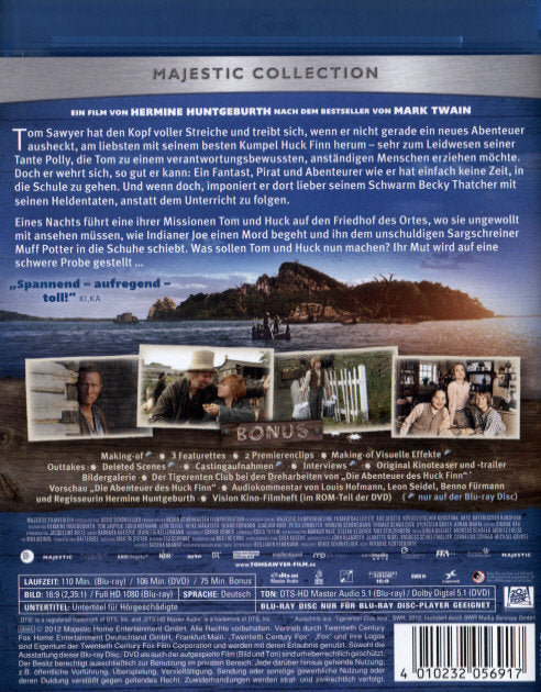 Enthält: Making Of; 2 Featurettes; 2 Premierenclips; Making-of Visuelle Effekte; Outtakes; Deleted Scenes; Castingaufnahmen; Interviews; Original Kinoteaser und -trailer; Bildergalerie; Der Tigerenten Club bei den Dreharbeiten von "Die Abenteuer des Huck Finn"; Vorschau "Die Abenteuer des Huck Finn"; Audiokommentar von Louis Hofmann, Leon Seidel, Benno Fürmann und Regisseurin Hermine Huntgeburth; Vision Kino-Filmheft (im ROM-Teil der DVD); Tonformat DVD: DD 5.1 Deutsch; Tonformat Blu-ray: DTS-HD 5.1 Deutsch;