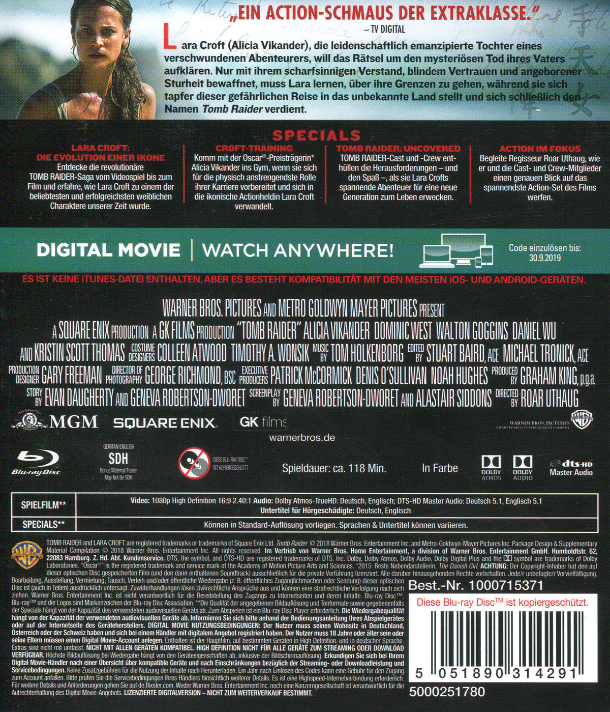 Schauspieler: Alicia Vikander, Daniel Wu, Dominic West, Kristin Scott Thomas und Walton Goggins