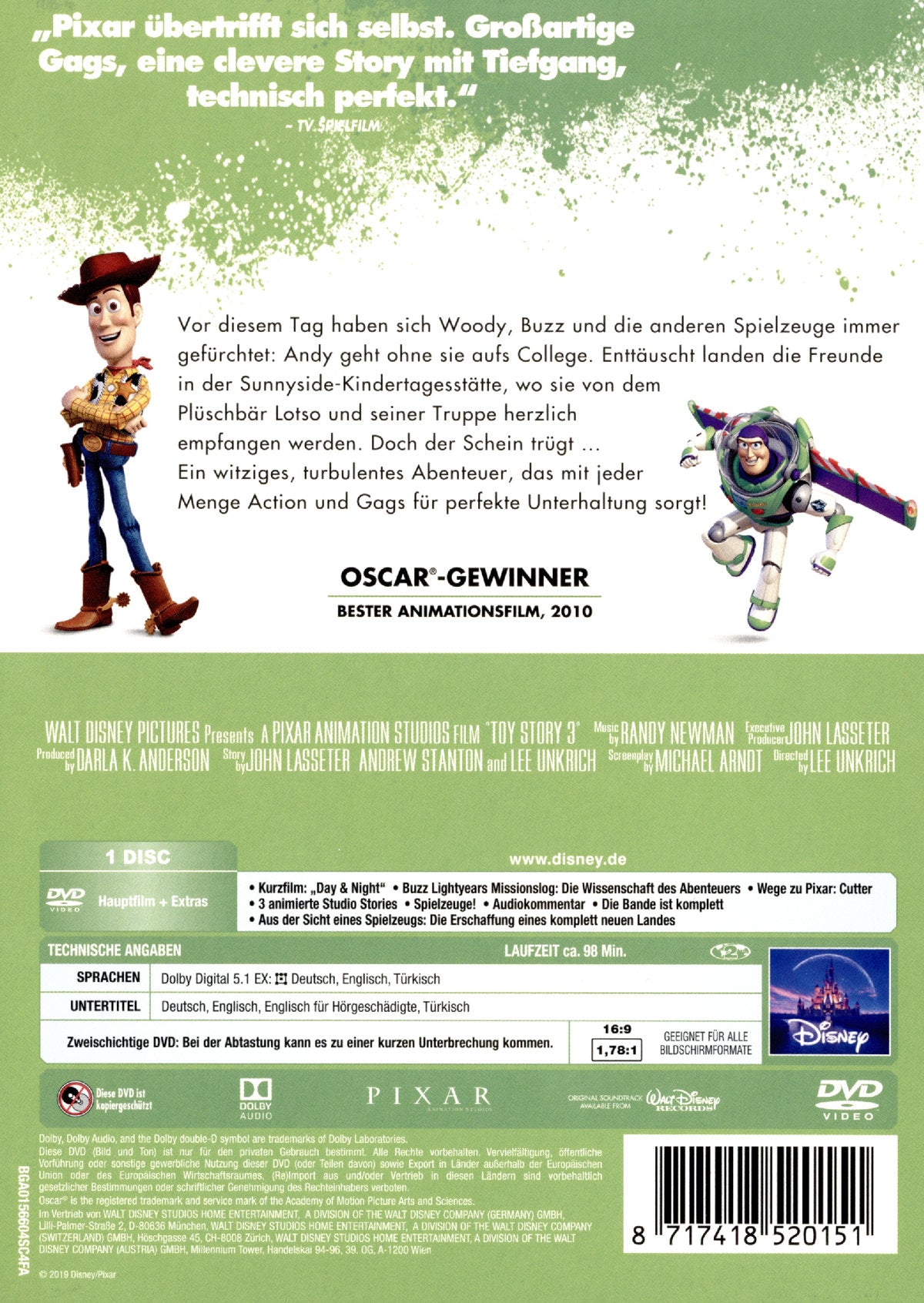Enthält: Kurzfilm; Buzz Lightyears Missionslog: Die Wissenschaft des Abenteuers; Wege zu Pixar: Cutter; 3 Studio Stories; Spielzeuge!; Audiokommentar; Die Bande ist komplett; Aus der Sicht eines Spielzeugs: Die Erschaffung eines komplett neuen Landes;
