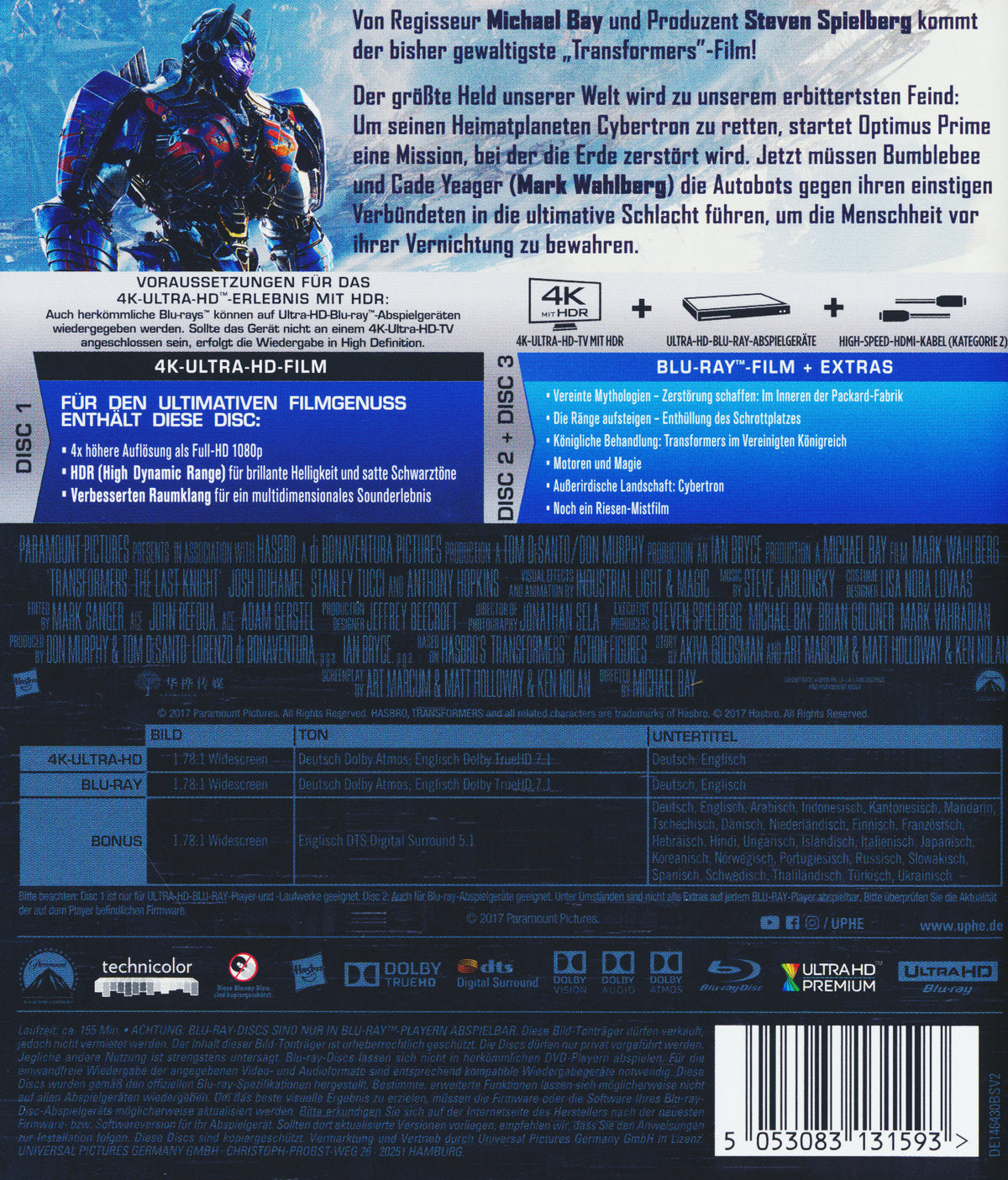 Transformers 5 - The Last Knight (4K Ultra HD) (+ Blu-ray) (+ Bonus-Disc)