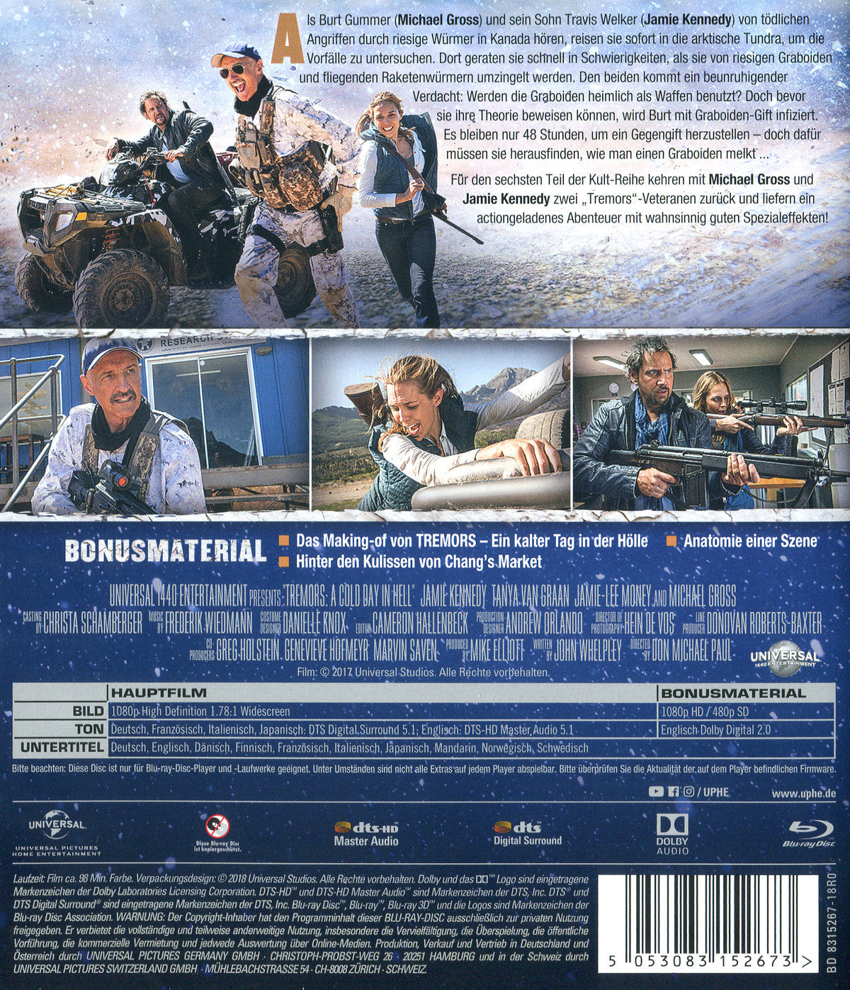 Für den sechsten Teil der Kult-Reihe kehren mit Michael Gross und Jamie Kennedy zwei "Tremors"-Veteranen zurück und liefern ein actiongeladenes Abenteuer mit wahnsinnig guten Spezialeffekten!