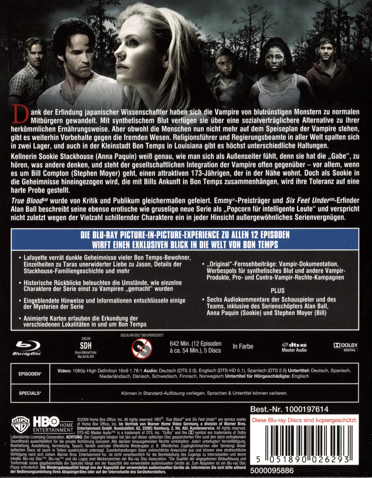 Enthält: Lafayette verrät dunkle Geheimnisse vieler Bon Temps-Bewohner, Einzelheiten zu Taras unerwiderter Liebe zu Jaosn, Details der Stackhouse-Familiengeschichte und mehr; Sechs Audiokommentare mit den Schauspielern und dem Team, inklusive dem Ausführenden Produzenten und Schöpfer Alan Ball, Anna Paquin (Sookie) und Stephen Moyer (Bill); Historische Rückblicke beleuchten die Umstände wie einzelne Charaktere der Serie einst zu Vampiren "gemacht" wurden; Eingeblendete Hinweise und Informationen entschluüsseln einige der Mysterien der Serie; Animierte Karten erlauben die Erkundung der verschiedenen Lokalitäten in und um Bon Temps; "Original" Fernsehbeiträge: Vampir-Dokumentation, Werbespots für synthetisches Blut und andere Vampir-Produkte, Pro- und Contra-Vampir-Rechte-Kampagnen; Sechs Audiokommentare der Schauspieler und des Teams, inklusive des Serienschöpfers Alan Ball, Anna Paquin (Sookie) und Stepahn Moyer (Bill);