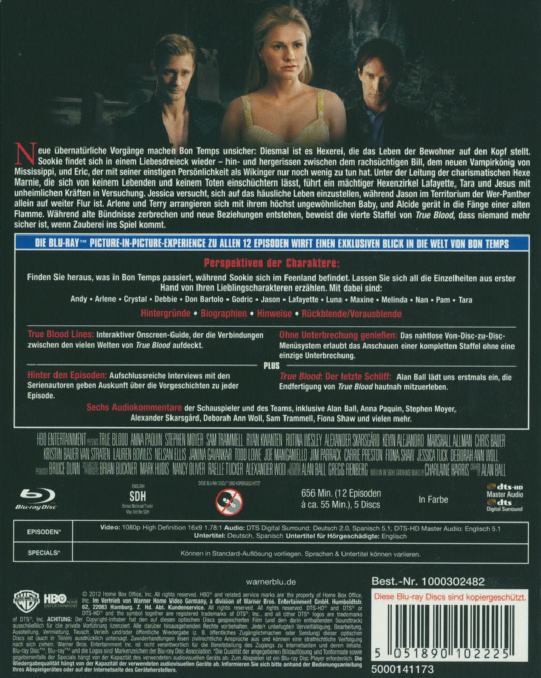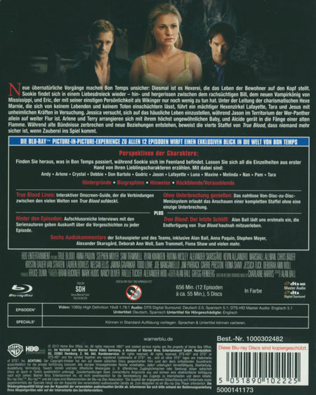 Schockiert stellt Sookie nach ihrem Kurztrip ins Totenreich fest, dass sich einiges in Bon Temps verändert hat: Jason hat ihr Haus an Eric verkauft, und überhaupt scheinen alle sie längst aufgegeben zu haben. Nur Eric beteuert, immer an Sookies Rückkehr geglaubt zu haben. Erleben Sie die vierte aufregende Staffel von "True Blood", die wieder einmal beweist: Nicht ist sicher, wenn Magie in der Luft liegt!